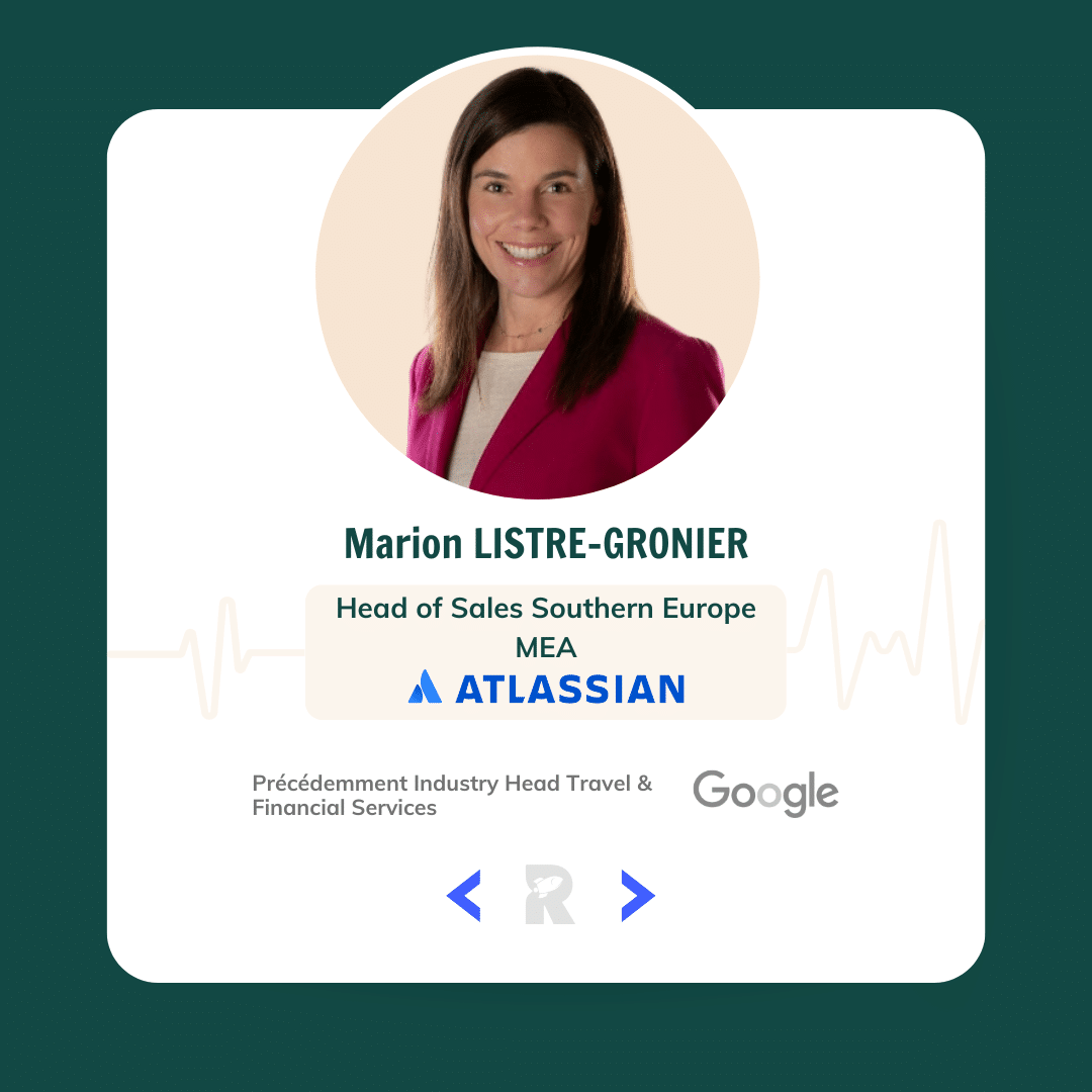 - Marion LISTRE-GRONIER ancienne Industry Head Travel & Financial Services chez Google devenue Head of Sales Southern Europe MEA pour Atlassian;