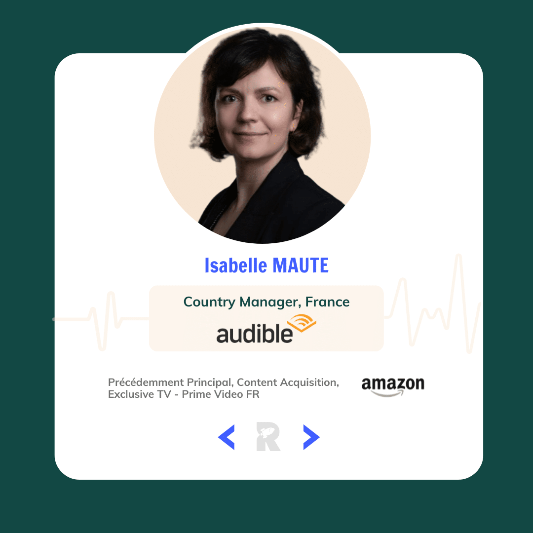 - Isabelle MAUTE ancien Principal, Content Acquisition, Exclusive TV – Prime Video FR chez Amazon devenu Country Manager, France pour Audible;