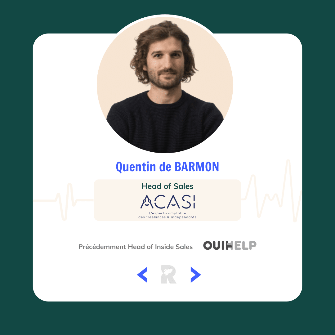 - Quentin de BARMON ancien Head of Inside Sales chez Ouihelp devenu Head of Sales pour Acasi;