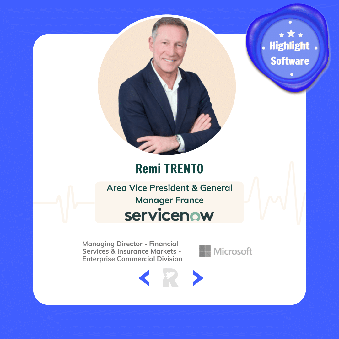 - Remi TRENTO ancien Managing Director – Financial Services & Insurance Markets – Enterprise Commercial Division chez Microsoft devenu Area Vice President & General Manager France pour Servicenow;