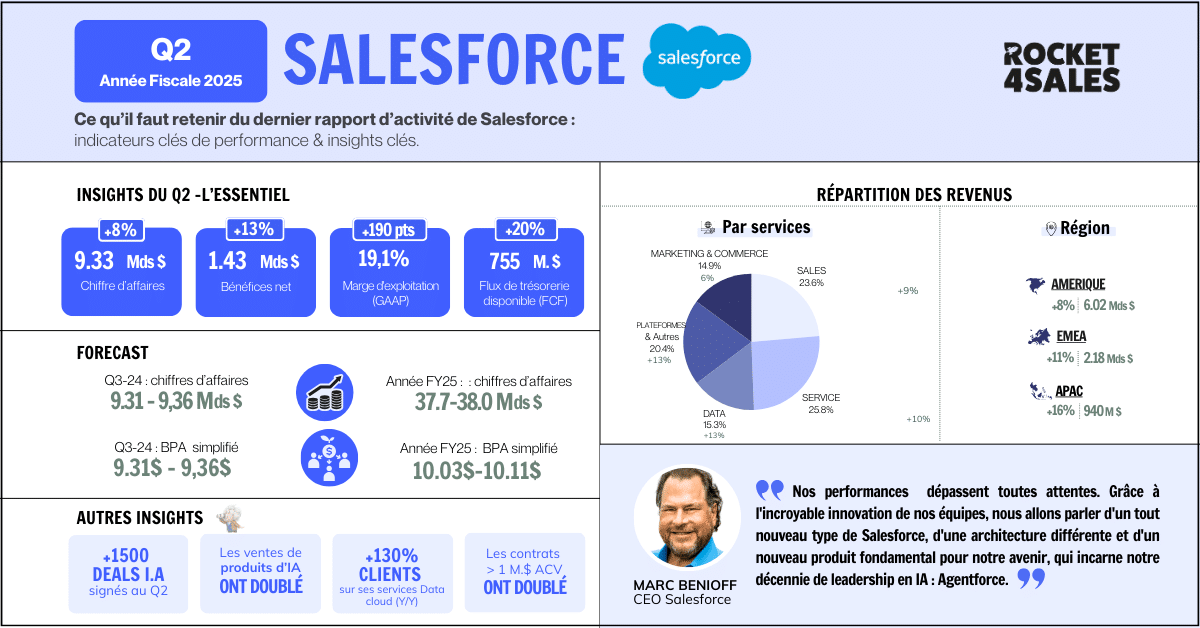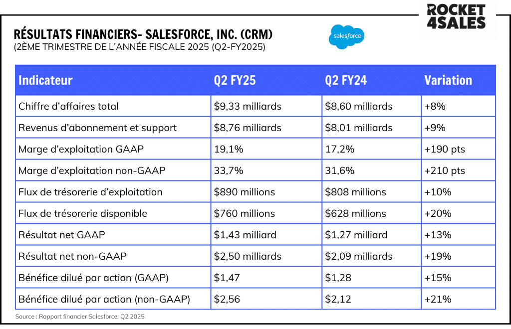 Après un Q1 agité, Salesforce dépasse ses prévisions au Q2 avec 9,33 Mds $ de revenus.